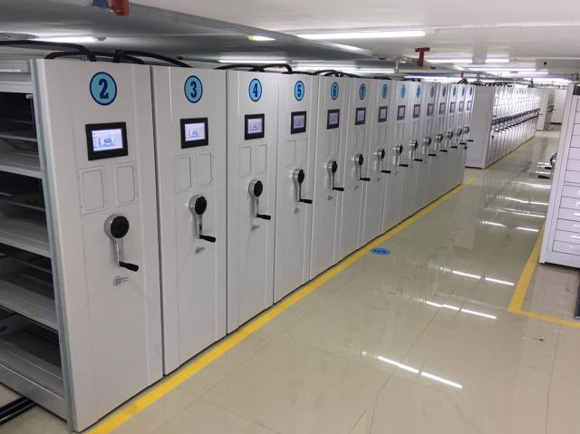 4、自动化程度既然是智能密集架,那么其自动化程度当然要高。除了传统的手动、电动功能外,还应增设电脑控制功能,同时内部实现联网。课自动调节架体内的温湿度,当出现安全事故时,可自动鸣警。智能密集架自动化程度越高,其安全性就越高,也越能节省人工成本。