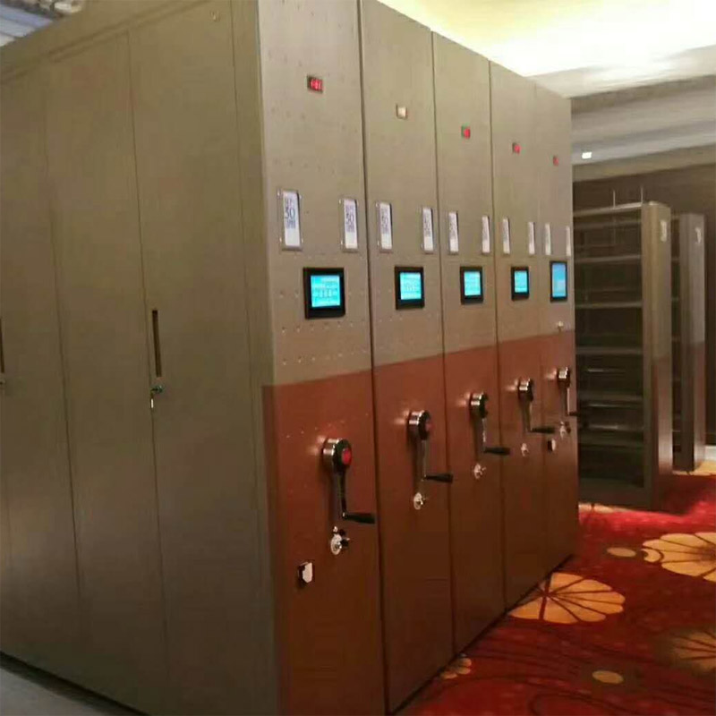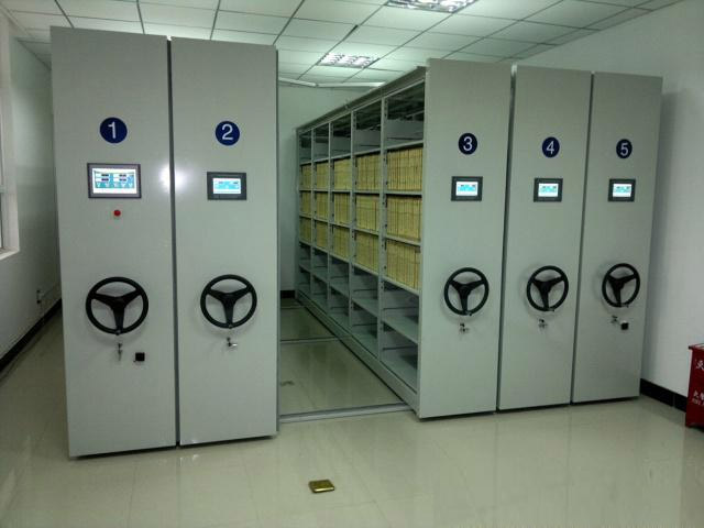 移动密集架主要用于档案资料、证券凭证等的存放,具保密封闭、空间利用率高、存取方便等优点。